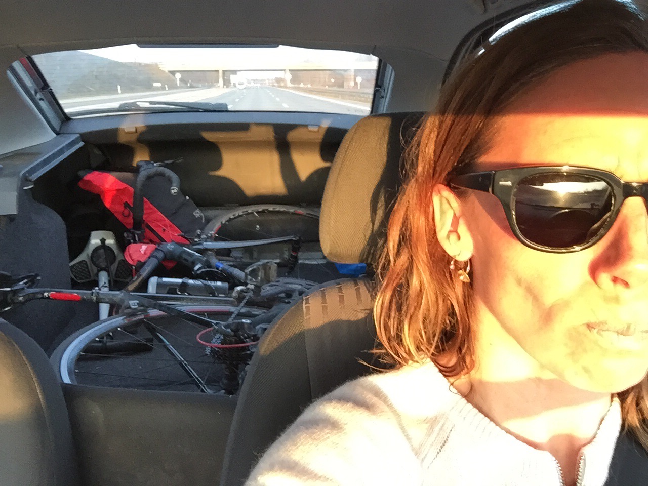 Et skift i omklædningsrummet i svømmehallen til cykelsko, lange bukser, lang bluse og cykeljakken – ud af svømmehallen i løb til cyklen. Skred i måtten og måtte ned og ligge i døråbningen… Nej ved du nu hvad…