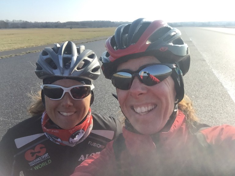 Jeg blev luftet i dag af Coach Jeanne i pæn god vind til 10×4 min intervaller på debuttur på flyvestation Værløse – og debut med tribøjler på. Perfekt ramme at ræse rundt på nedlagt landingsbane og mærke, hvordan cyklen bevæger sig med bøjler på – både i med-, mod- og sidevind. Hvordan den svinger og hvordan det føles at skulle op af bremse eller skifte gear. Det blev til 63 km og herefter en lille 4,5 km OFF bike run i parken. Virkelig en skøn tur.
