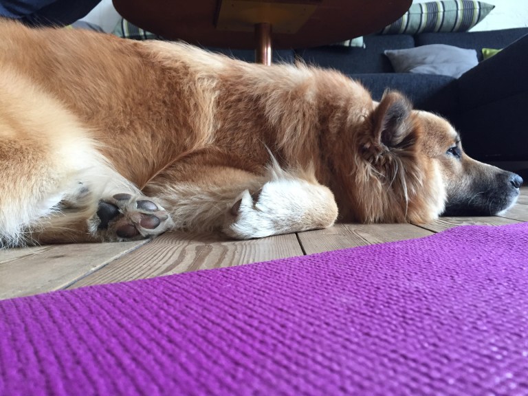 Og jeg skulle hilse og sige at dagens core træning var noget udfordret af en glad hund, der ville ligge nærmest ovenpå mig, mens jeg fx lavede mave-øvelser. Det blev lidt nemmere, da jeg kom til planken – så faldt han til ro og lagde sig ved min side. Core bliver ekstra sjovt fra nu af!
