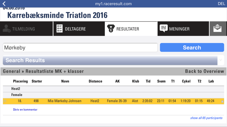 Efter mål hilste jeg på klubkammerater og med-atleter og gik ned til klubteltet og væltede direkte ud i vandet igen. Stranden var blevet til fluepapir og vandet var såååå godt. Mens jeg lå derude råbte Mellanies store datter “du har nappet min mor med 50 sekunder” – åååh sejrens sødme!