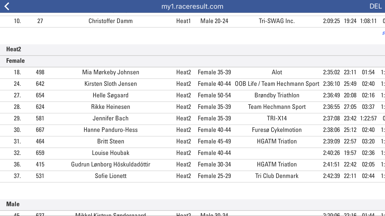 Jeg kom i mål i 2.35.02. Havde håbet at komme under 2.30 men varmen var streng og der var langt mellem skiftene.