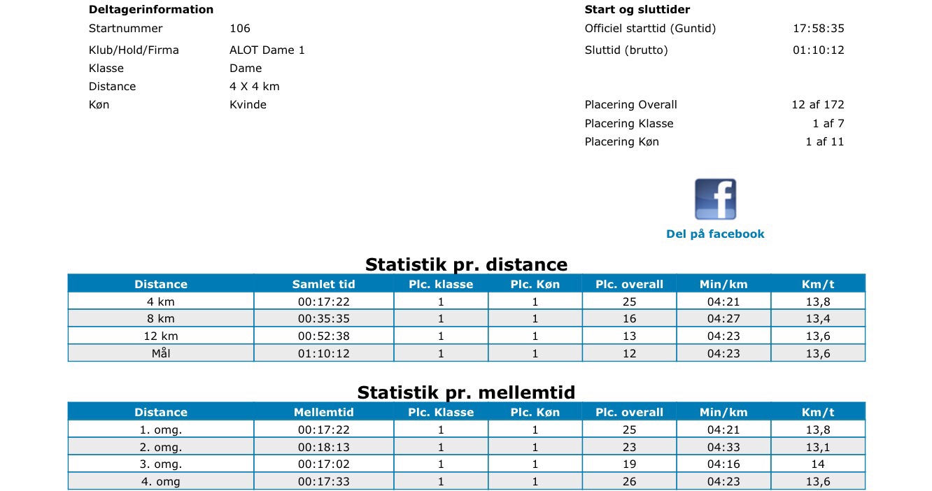 Holdet bestod af løbe-klubmesterskabets nr 1, 2 og 3 (Malene Teller-Blume (som også europamester i Ironman i sin aldersgruppe), Lise og Mig selv sagde hunden og seføli Mellanie. Jeg løb som første løber, så Lise, Malene og Mellanie.