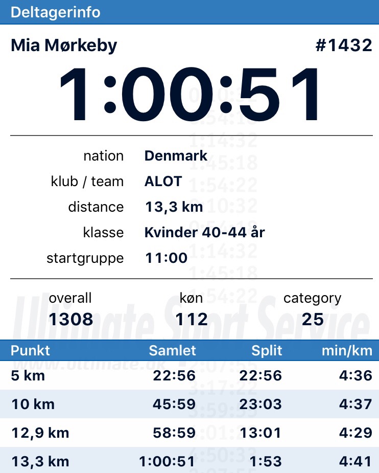 4 sek mindre pr km, så er den der! Men hvorfor er den så svær at fange ,den der forjættede time??? Nu har jeg løbet Eremitagetløbet siden 2001 og de sidste år haft det at komme under en time som mål.