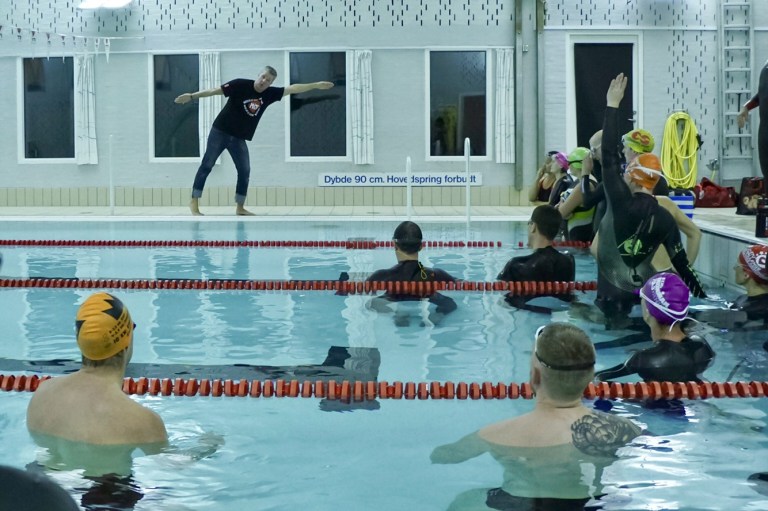 Svømmetræning med ALOT foregår tirsdag aften og fredag sen eftermiddag. Tirsdag er vi delt op i 3 hold a 55 minutter. Jeg svømmer på hold 2 – og for tiden også ofte sammen med hold 1 – så jeg får lidt mere svømning sat i banken. Jeg får svømmet ca 1800-2000 m på et hold afhængigt af svømmeprogrammet på dagen.
