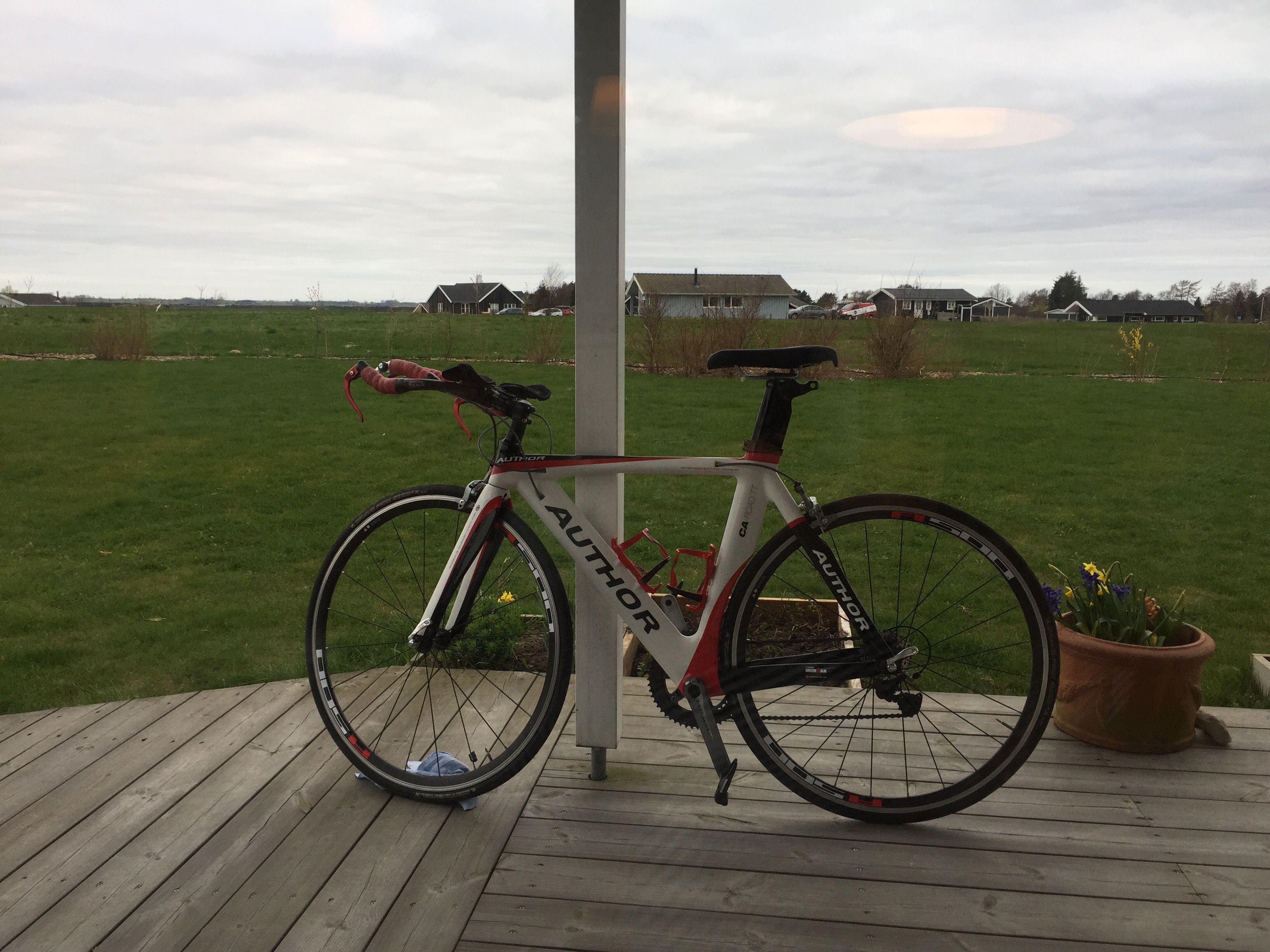 Sadlen (ISM PN 2) er god, men så forskellig fra min Sella Italia Diva på min racer. Jeg bliver altså noget øm på inderlårene her i starten, og 3 timer på den i dag efter 2½ time i torsdags til træning med klubben kan mærkes. Jeg er spændt på, hvordan det føles, når jeg skal cykle hjem heroppefra (forhåbentlig i medvind!).