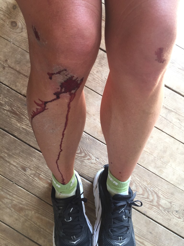 Jeg afprøvede min nye tridragt som fungerede perfekt til de ca 18 graders varme. Jeg var mere nervøs for, om der var gået hul i den end på mig… jeg børstede støvet af mig, rejste mig fra mit styrtet fortsatte…
