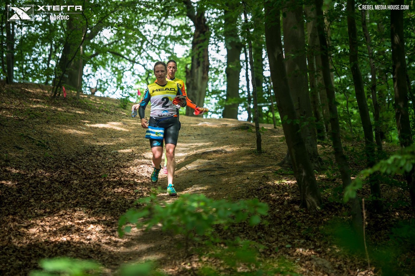 Der var sat fin afmærkning hele vejen rundt på ruten – små flag langs den sti, vi skulle følge på løbedelen og store flag i søbredden, når vi skulle gå i vandet eller gå i land. Det fungerede rigtig fint. Ruten var virkelig oplagt til swimrun. Passager med bakker, rødder og træer og single trail afløst af grusstier, små broer og en meget varieret rute i det hele taget. Ind imellem måtte vi igennem sten og mudder for at komme ud i vandet, men ofte var der enten en bro eller en lille sandkant.