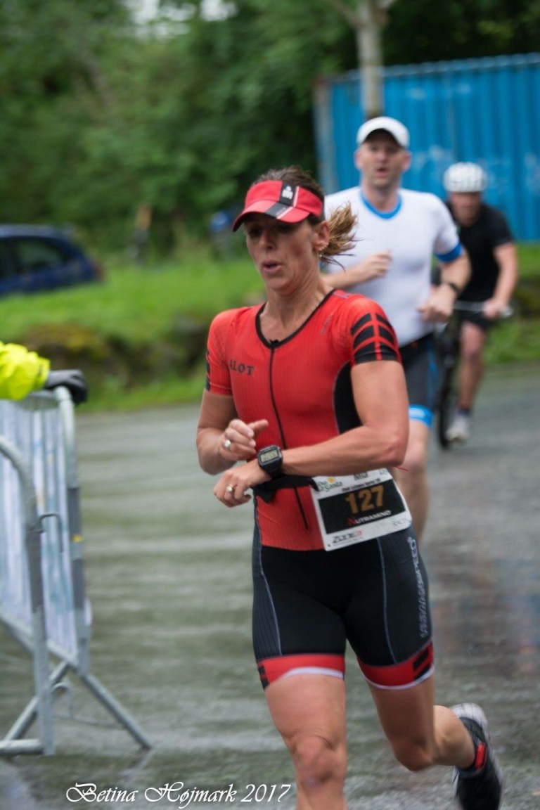 Jeg løber op til T1 og tager hætte og briller af imens, trækker dem ind i ærmet, mens jeg vrider våddragten af over skuldrene. Jeg nulrer lidt lang tid i T1 med at få strømper på i det våde vejr.