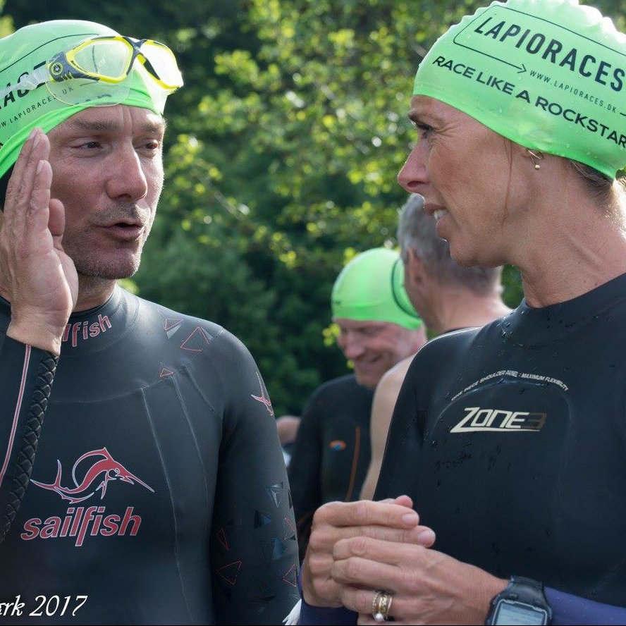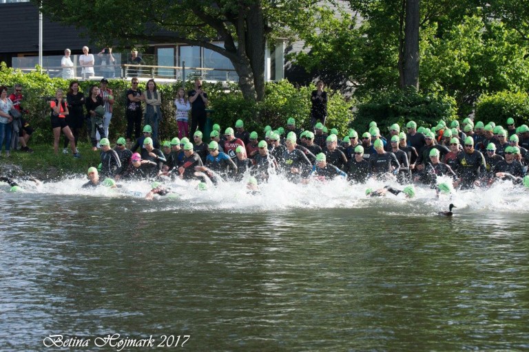 Svømningen gik mindre godt end sidst. Vandet virkede koldere, fordi luften var lunere, og jeg havde lidt hyper-vejrtrækning og tog derfor 5 brysttag for at få kontrol over luften. Mine briller tog vand ind, efter jeg havde fået et godt spark på siden af hovedet, så jeg endte med at svømme ret skævt på indersiden af feltet efter vi havde vendt.