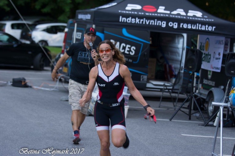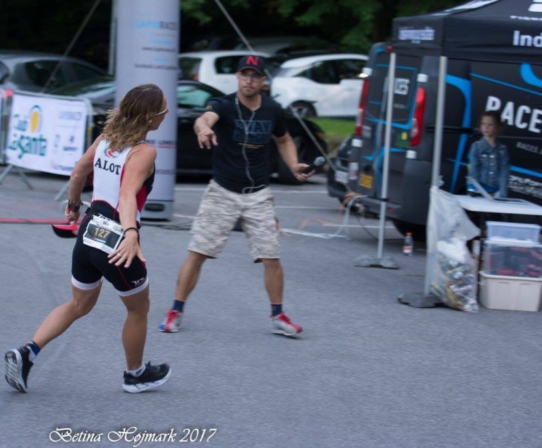 I T2 gik det stærkt med at komme i løbeskoene, efter jeg havde skiftet snørrebånd til de selvsnørrende. Anders Rørbæk – superkommentatoren over dem alle – råbte af mig i mikrofonen og jeg blev så befippet at jeg løb den forkerte vej ud af skiftezonen. Efter en kærlig opsang “Du løber den forkerte vej Mia!”, vendte jeg om i en latter krampe og kom ud på løbet.