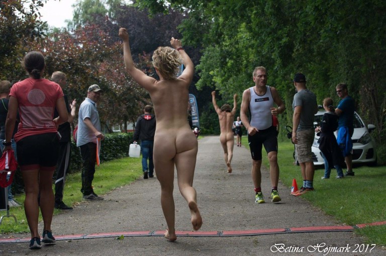 Kunstfestivalen “Flerdagsdrøm” havde til huse lige bag Metalskolen, så der var en del “hippie-stemning” og vi fik da også selskab på løbedelen af to nydelige og meget nøgne mennesker, der løb med og heppede stort set alle 10 km. 🙂