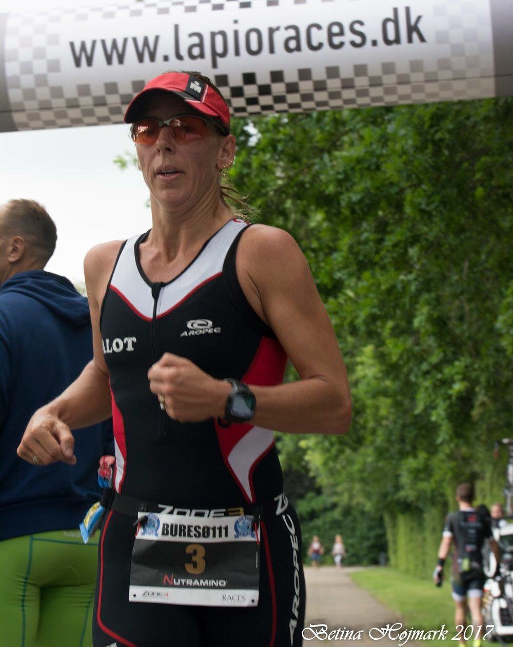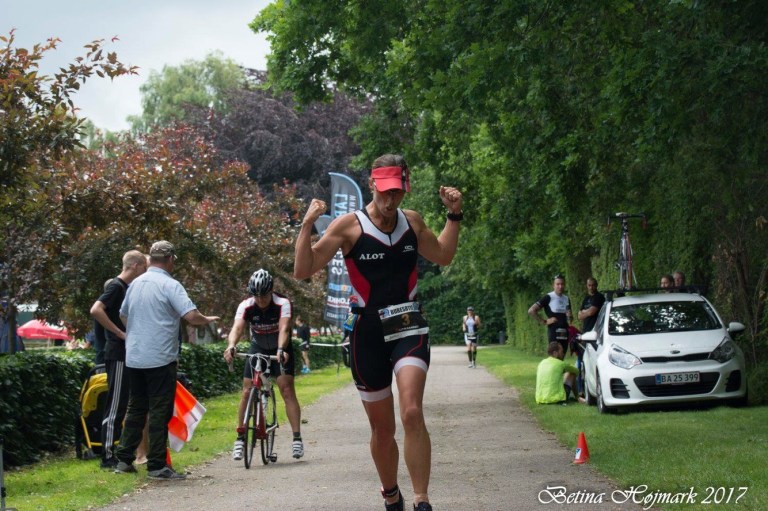 Jeg plejer at glæde mig til at skulle løbe, men selvom jeg havde taget min energi, som jeg skulle på cyklen (inkl Snickers), var jeg mat og træt i T2. Taknemmelig for, at der kun ventede 10 km i løbeskoene – 3 runder af 3,333 bag og rundt om Metalskolen.