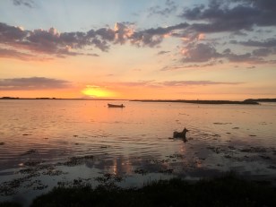 Vi fik spontant en aftale i kalenderen fredag aften hos sommerhusvennerne, så efter arbejde mødtes jeg med Katrine på Ishøj strand til en times svømning før “festivitas”.