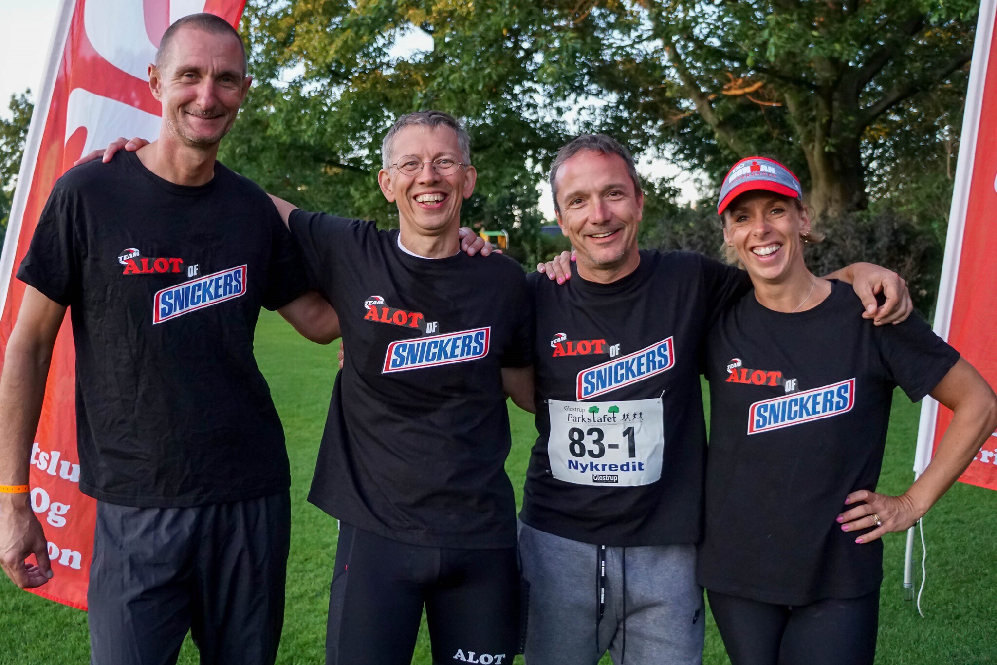 Tirsdag aften var der også Glostrup Parkstafet og selvom jeg først havde sagt nej til at være med, fordi jeg havde et møde, der sluttede kl. 18, blev jeg alligevel lokket med som sidste løber sammen med mit lille IM trænings-team “Team ALOT of Snickers”.