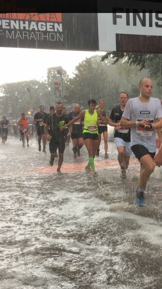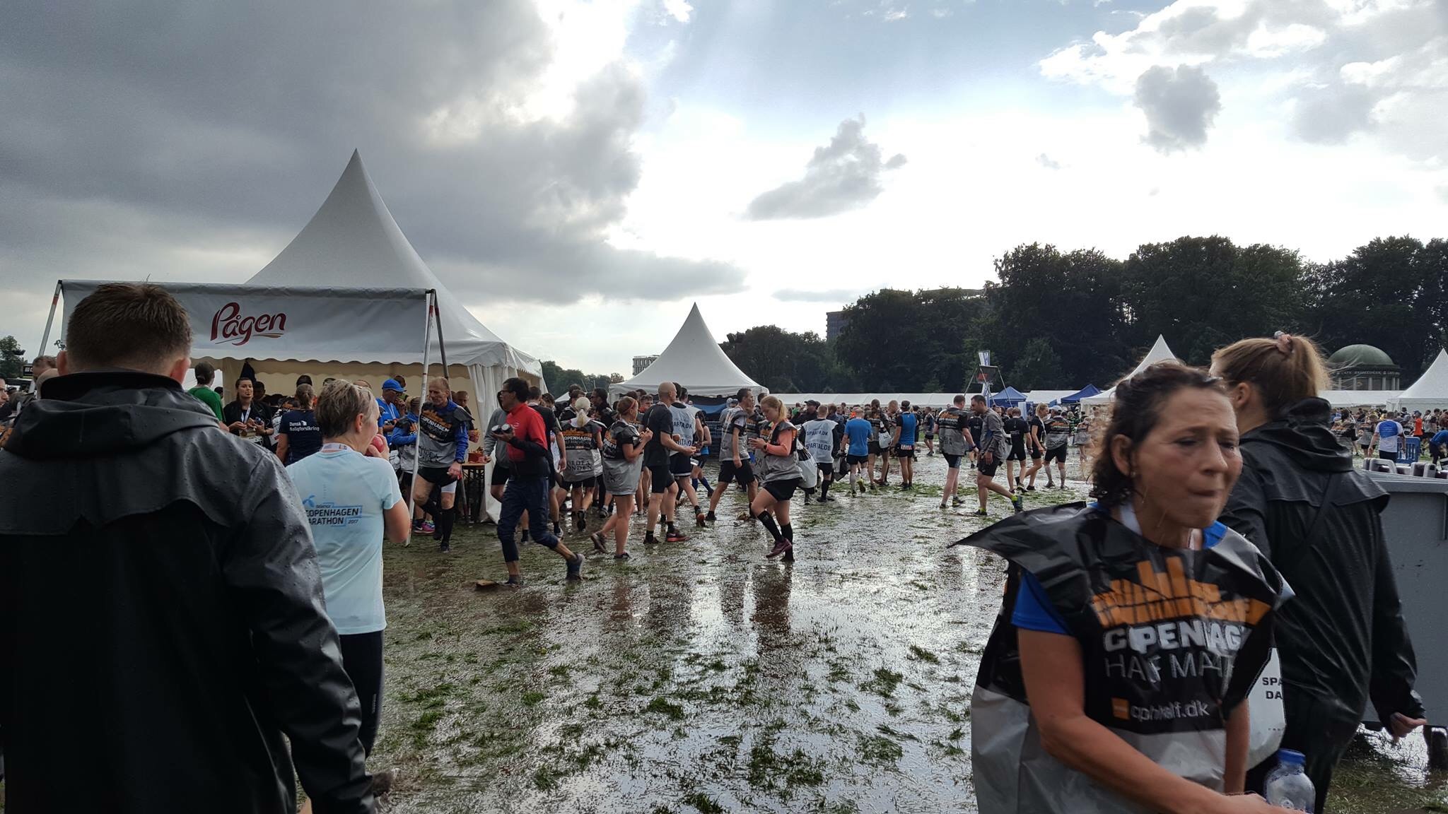 Ved indre by begyndte himmelen at trække sammen og åbnede sig med gevaldige lyn og larmende torden lige oppe over vores hoveder ud over Østerbro. Så kom regnen og den fulgte os i mål de sidste 4-5 km.