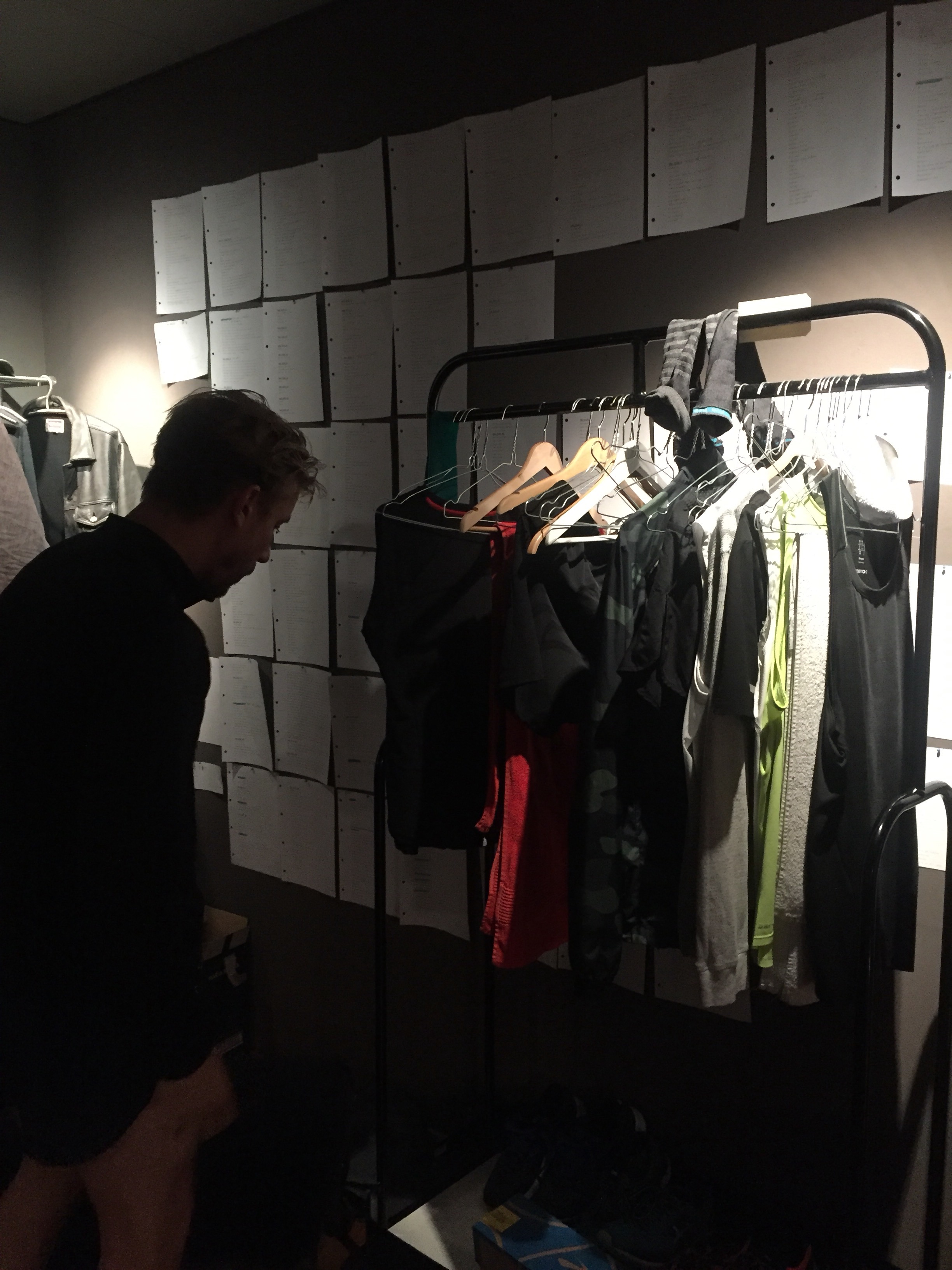 Vi talte med Anders om vores oplevelse af forestillingen og fik indsigt i, hvordan han har forberedt sig: hele teksten hænger på væggen i garderoben, som har den smukkeste udsigt over havnen. Et tøjstativ fuld af løbetøj og løbesko. Claus Heckmanns løbetabeller og tal side om side med en børnetegning tegnet af Anders Legarth Schmidt datter Ellen. Den var så fin og forestiller en pige med en ballon der svæver over København – tegnet mens hun var indlagt. Jeg græder lidt igen. Det må virkelig være en vild forestilling at skulle spille igen og igen hver aften.