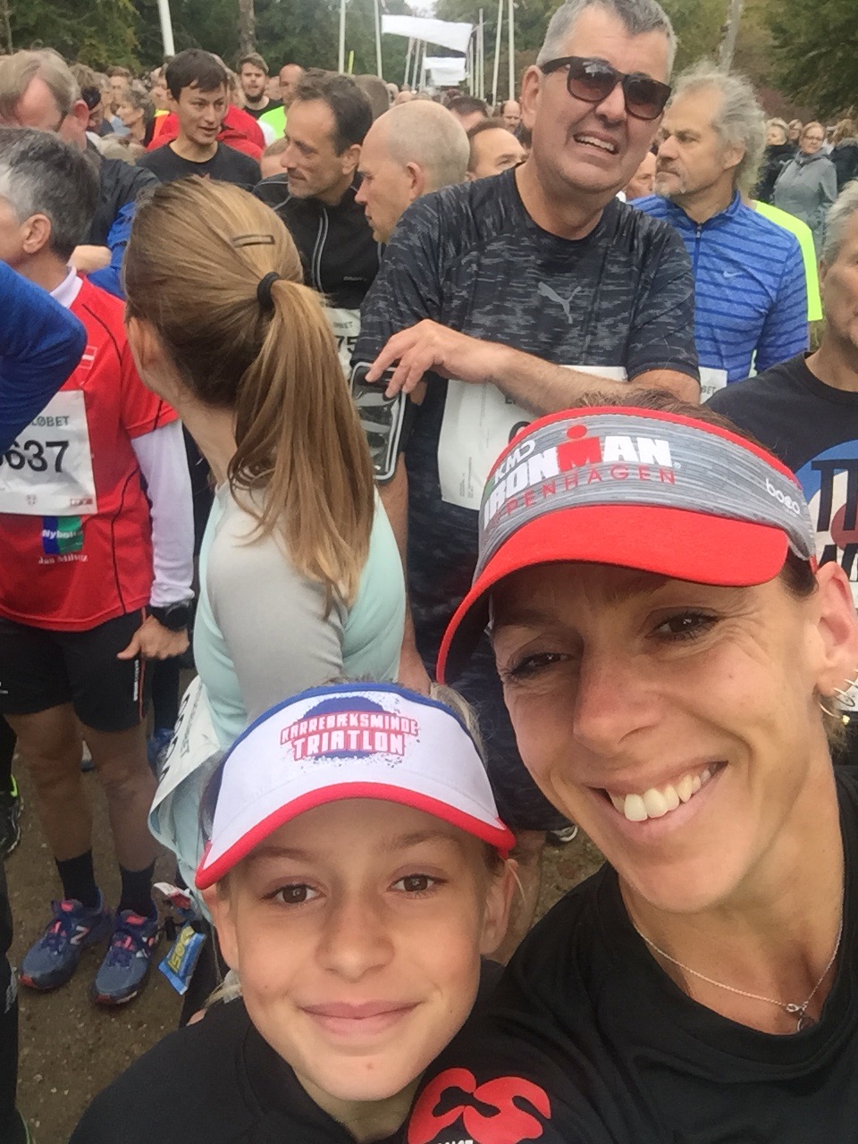 Kl 11 var vi klar til start og Carla var mega sej: de første 4 km med sidesting, så nogle km med ondt i fødderne og så begyndte musklerne at nive. Carla ville hellere løbe op af bakke end ned af bakke (i modsætning til moren) hvor hun bedre havde kontrol over tempoet. Hun lå stabilt hele vejen rundt, så flot!