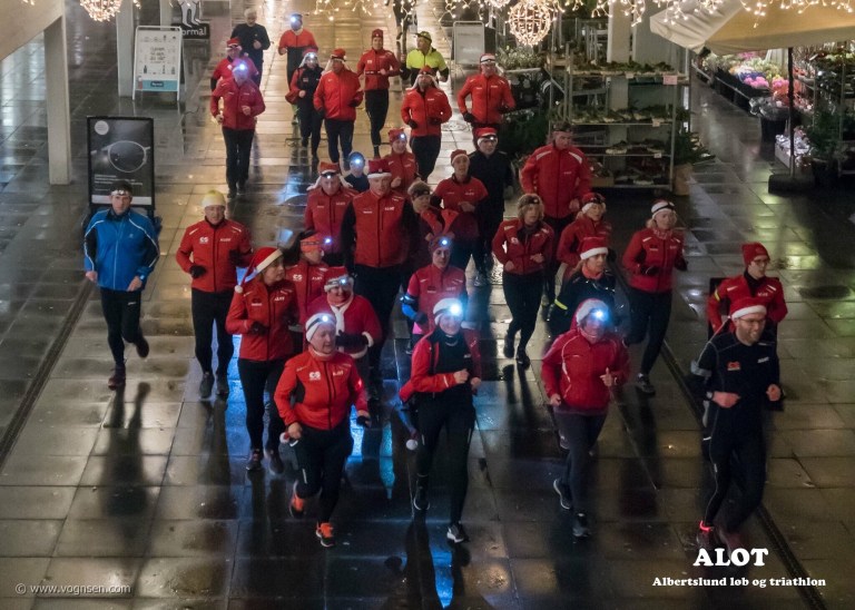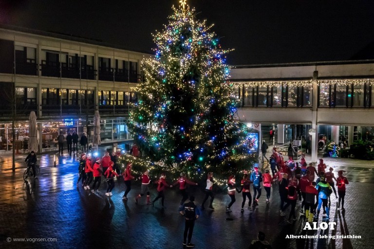 Onsdag var der “markedsføring” indlagt på løbeturen for både 40 minuttershold og 10 km holdet med ALOT. Vi var trukket i jule-løbe-outfittet (mit havde indlagt lyd med bjælder) og løb ned til juletræet i midtbyen i Albertslund, hvor vi med skønsang dansede rundt om træet et par gange og tiltrak os en vis opmærksomhed med alt vores røde tøj, pandelamper og lyskæder:-)