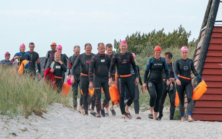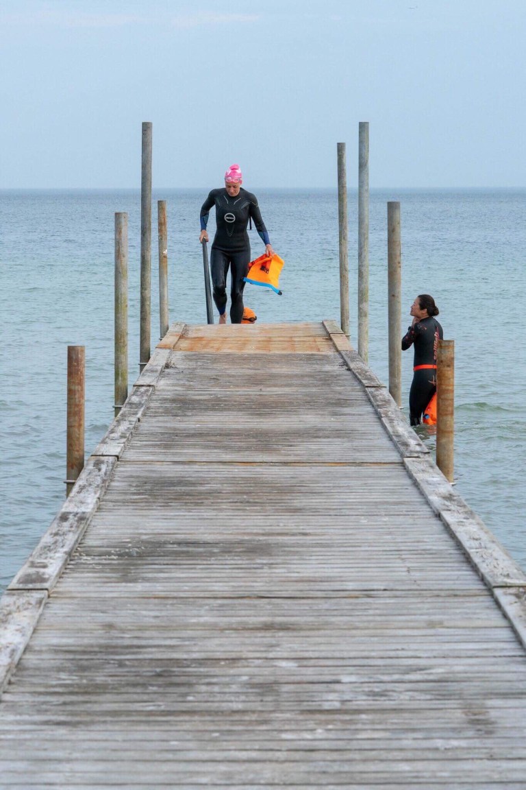 Vågnede forkølet i nat og er blevet hjemme fra job i dag for ikke at smitte de andre: Mærkede det godt lidt i går eftermiddags, men ignorerede det og tog med 24 flotte svømmere fra ALOT til open water svøm. Mandy havde debut i havet, så jeg lagde mig siden af hende og var i nærheden. Husker jo min første gang – jeg var meget spændt og skulle lige finde min rytme. Så jeg lå og plumrede med mine marathon-ben og den altid skarpe Gitte var på pletten med kameraet, og jeg ku ikke dy mig for en “baywatch wannabe” i løb henad badebroen. Efter svøm havde jeg Snickerskage med til klubfolket, som måtte deles om det, da jeg slet ikke havde nok med. Sidst var vi jo kun 7! I dag står den så på strepsil og snotklude….