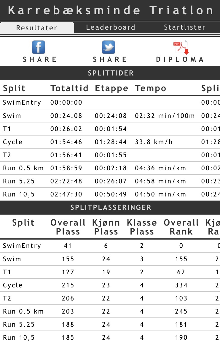 Cykelruten var forlænget fra 45 km til 50 km, så det gjorde det lidt svært at sammenligne splits med tiderne sidste år, men det blev gennemsnitsfarten der talte. Den var som forventet lidt lavere end sidste år, men med den sparsomme cykeltræning jeg har fået klaret, skal jeg vist være glad for min 33,8 km/t. Jeg led lidt med min dragt og min sadel – har slet ikke fået trænet i min speedsuite endnu – så det ku mærkes…