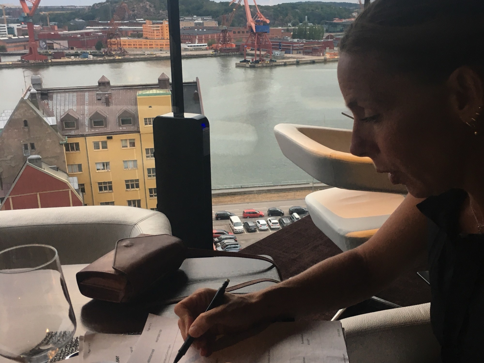 Alt udstyret er pakket i rygsæk og det nødvendigste til hotellet i kufferten. Vi er ankommet i Gøteborg efter 4 timers køretur og 3 tissepauser til Caroline, hvis væskedepoter ikke skal fyldes yderligere:-)