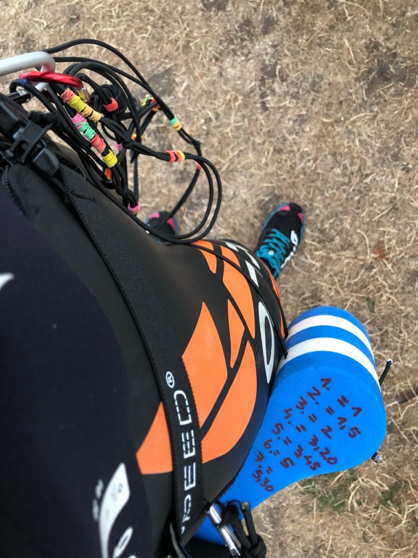 En af de sidste svøm fik jeg skrabet hul i min dragt på numsen, da jeg forsøgte at glide ned i havet hen over nogle muslinger: jeg mærkede ikke noget til det bagefter men skal vist hjem og lappe dragt.
