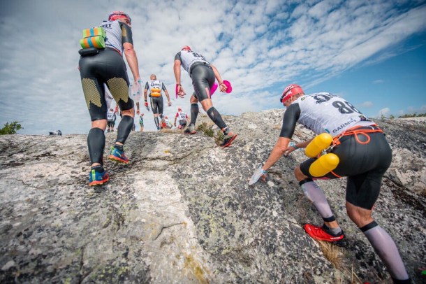 De erfarne/professionelle deltagere, som det stort set udelukkende var, træner deres skift, springer på hovedet i vandet, fordi de kender ruten, og har trænet og trænet og trænet konceptet med at løbe på klipper, springe op og ned af hav, lyng, krat, sten osv. Så de kravler ikke rundt, som vi gør! :-S De kommer rundt flere timer hurtigere end os. Vi begriber ikke at de tør – eller kan.