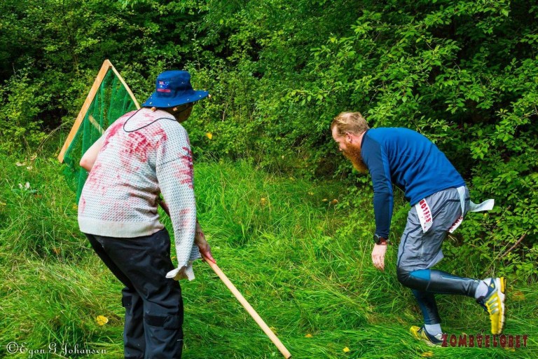 Kl 8 tjekkede jeg ind i nummerudleveringen og mellem kl 10-12 var der godt gang i den. Jeg stod i “zombie-nummer-udleveringen” og checkede zombier ind. Jeg havde også lidt eftertilmeldinger. Det hele gik glat – ikke noget videre kø. I år var der ca 200 zombier og 1500 løbere.