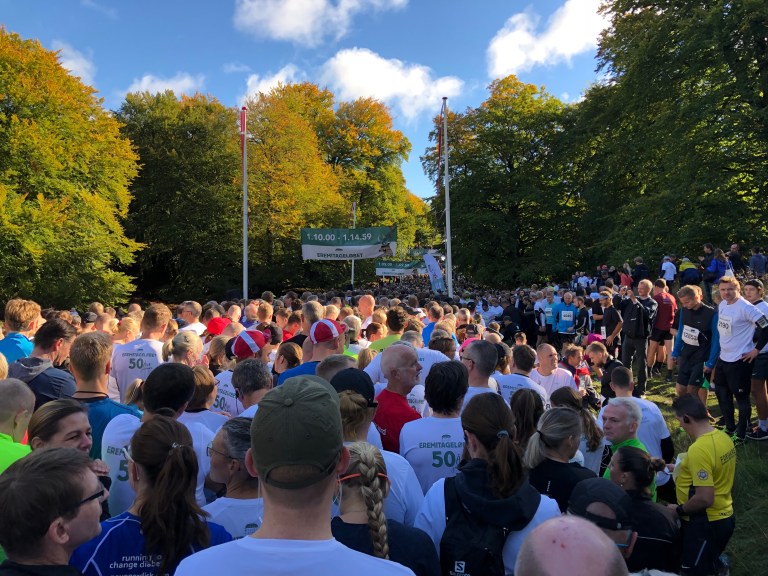 I startfeltet sludrede vi med en dame, der skulle løbe sit 43. Eremitageløb. Hun var med første gang, da hun var 14, så Carla fik god karma og street-credit før start 🙂