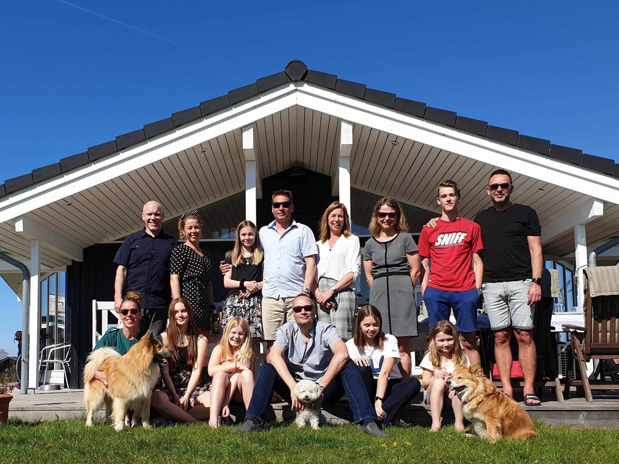 Søndag var magisk i sommerhuset! Vi var samlet alle sammen med undtagelse af de store børn. Vi spiste ude i den vindstille have, vi gik på havnen og købte is med hundene, vi hoppede i havet alle sammen og grinede hele vejen hjem. Vi spillede kongespil, rundbold og Trivial Persiut, drak kaffe og nogle faldt i søvn på sofaen mens andre snakkede højere og højere og spillede kort i baren. Det var så hyggeligt!