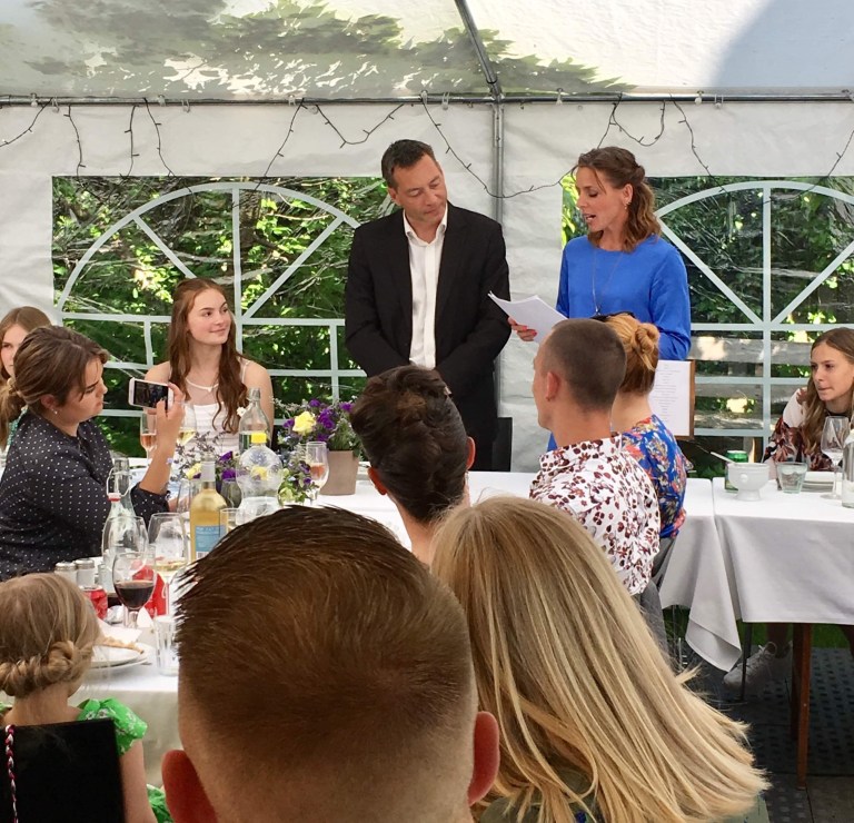 Jeg er høj! Nogle gange går alting bare op i en højere enhed – og det gjorde det så sandelig denne St. bededagsweekend. Selvom det var en tæt pakket konfirmationsdag, var alle så dejligt afslappede og så virkelig ud til at nyde det. Vi holdt fest i 12 timer! Alle de nødvendige ingredienser var til stede: 56 festklædte familiemedlemmer og venner, taler og sange, unge og ældre som hyggede sig sammen på tværs af alder. Der blev pakket gaver ud, grædt rørtheds- og glædestårer, skrevet hilsner på fronten af baren, i gæstebogen osv. Der blev danset, spillet beerpong, joket, grinet og talt om stort og småt. Jeg gik i seng 2, men sov først ca. 03.30, da huset var roligt. Det susede for mine ører af alle de indtryk fra en magisk dag, Nøj det var fedt!