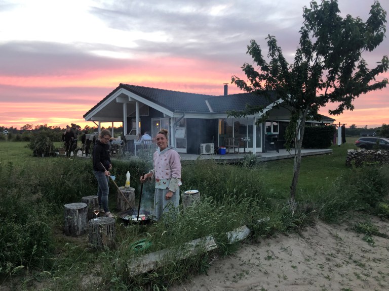 Efter maden nappede vi en gåtur med IslandskeBalder og Charlie til havet med Stine inkl kvindesnak. Og så sluttede dagen med pandekagebagning over bål i den mest suveræne solnedgang. Guitaren blev hentet frem over et glas Rose indtil Nattergalen tog over. Jeg bobler nærmest over af lykke sådanne dage!