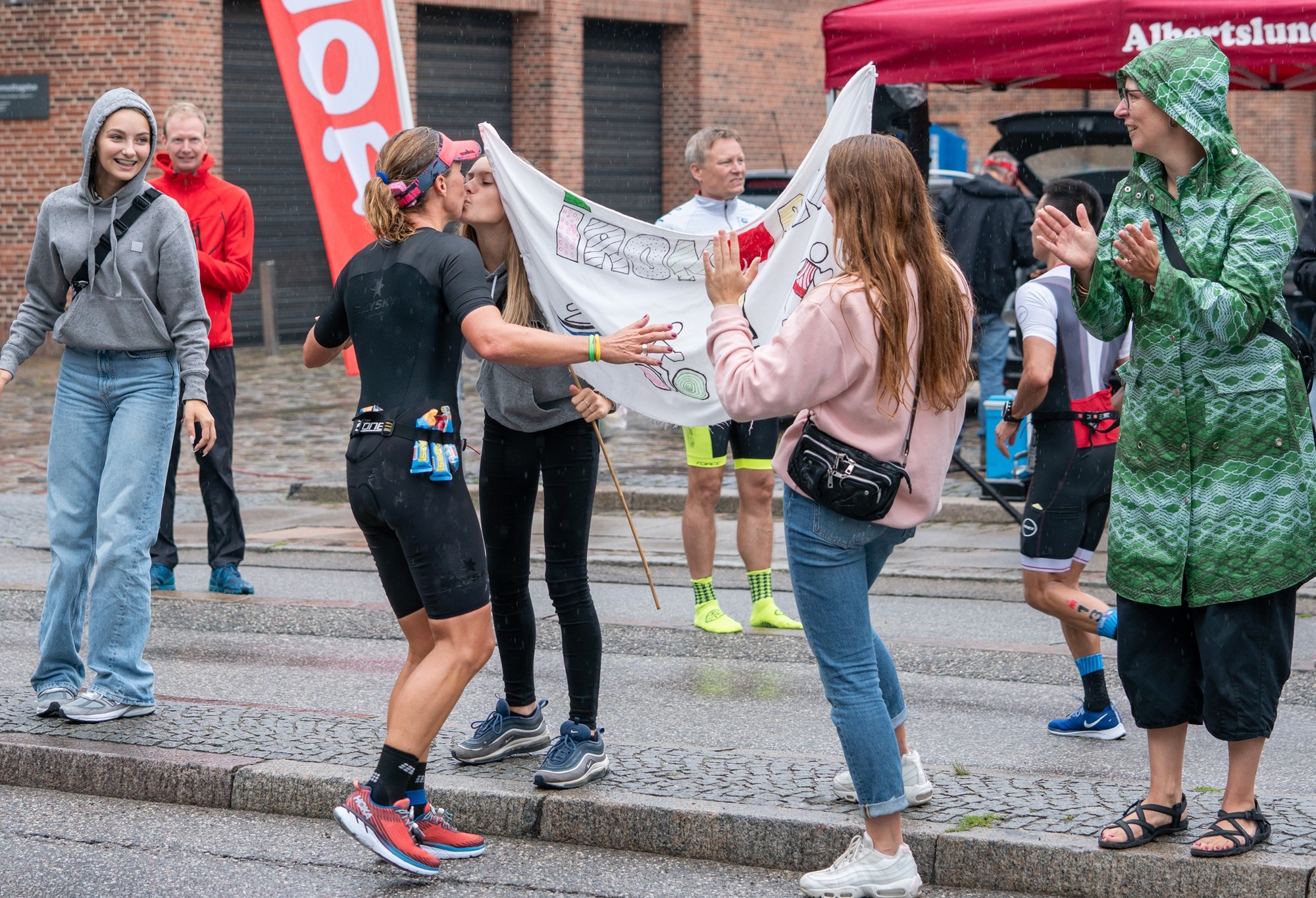 14.45: Pigerne holder øje med hvornår jeg kommer med banneret fra 201714.45: 2. runde på løbet – og det var det bedste at se pigerne! Deres stolte smil og hæse stemmer14.47: Chefen giver lidt opbakning16.50: Mine forældre er der på sidste runde og regnen vælter ned. Dejligt at de nåede ind!17.10: Regnen tager til og jeg begynder at fryse17.20: På vej ud mod sidste runde – vi ses i MÅÅÅL17.51: Den røde løber er lige rundt om hjørnet…17:52 “YOU ARE AN IRONMAN”