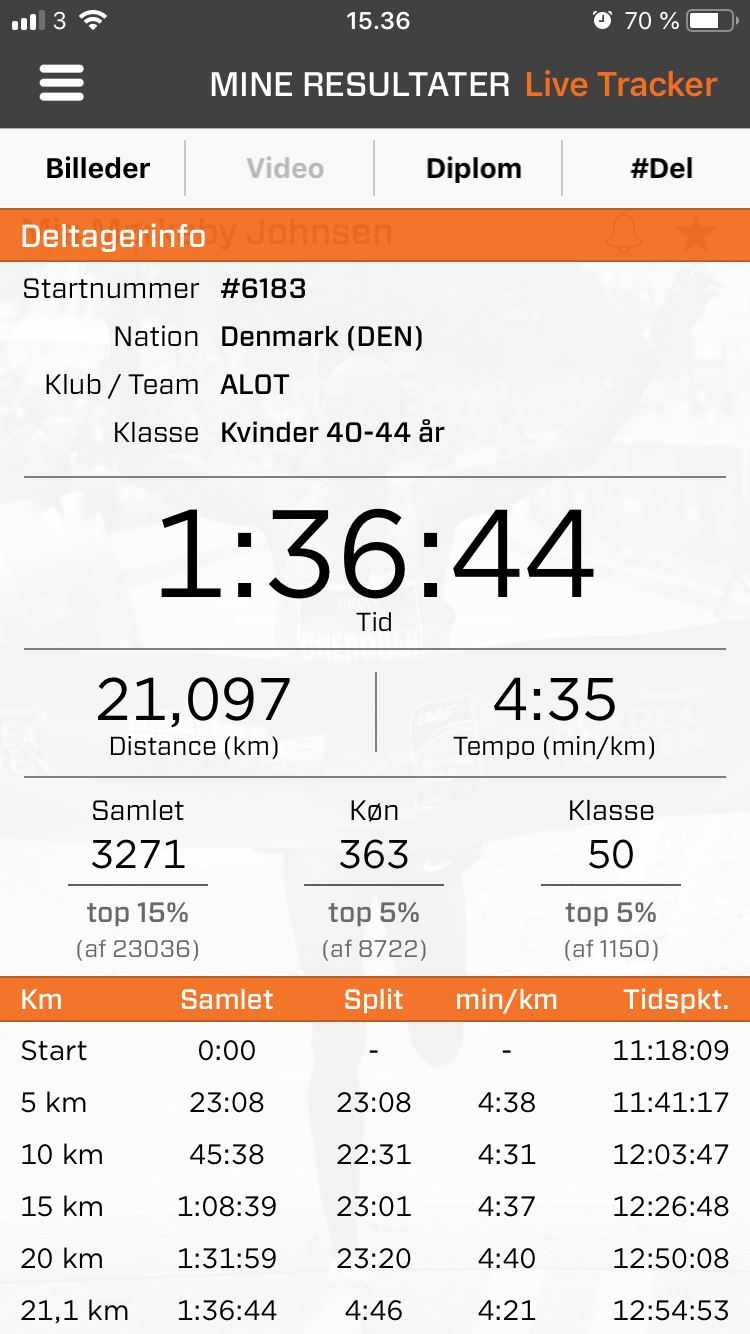 Jeg blev nr 50 ud af 1150 kvinder i min aldersgruppe, og placerer mig dermed i top 5% også blandt samtlige kvinder.