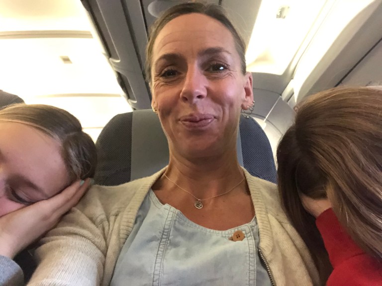 Jeg skriver dette i flyveren på vej til Kreta, hvor vi skal ned til 23 grader og høj sol i efterårsferien, bare os fire. Og jeg overvældes af sådan en taknemmelighed over at begge mine piger sover op af mine skuldre i flysæderne, mens solen stiger op og blænder mine øjne, så de løber over.