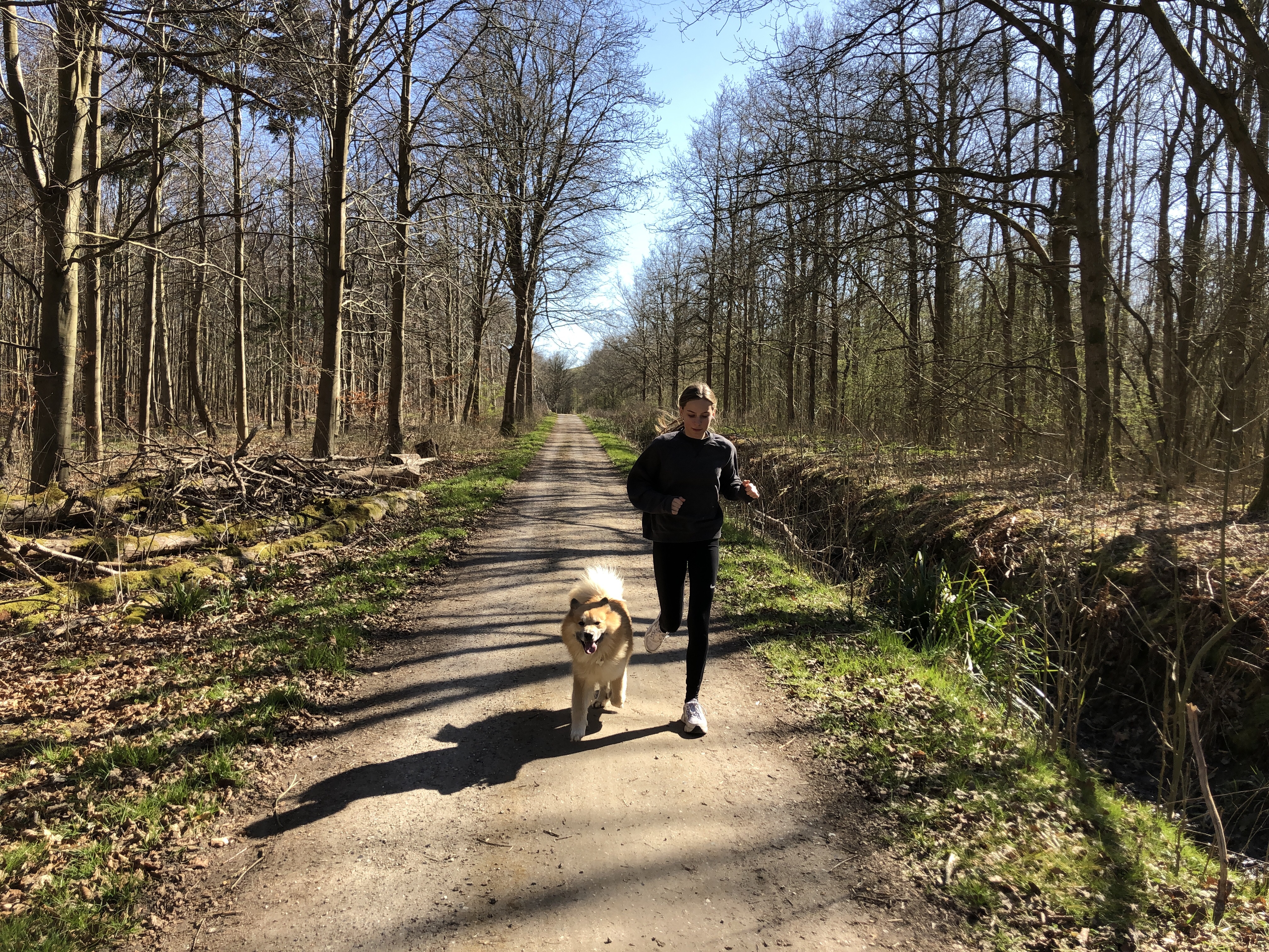 I dag fik jeg det bedste selskab i skoven af Carla på turen med Balder. Disse cykel, løbe og lunteture er min mentale pause fra Corona-livet på Pilevej, hvor der er mange projekter i gang: i kælderen hvor 3 rum er i gang med spartel, maling og fliser – og i haven hvor vi beskærer, fælder og skaber masser af nyt lys! Der er så meget lys i den blå himmel for tiden. Jeg vælger at tro solen håner den forbandede virus. 🌞