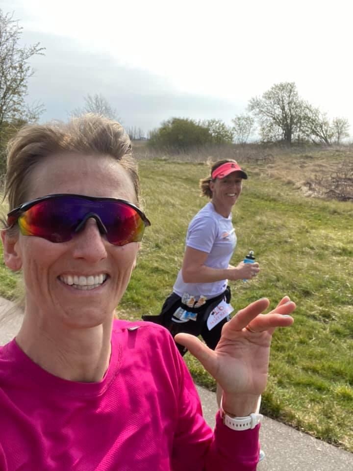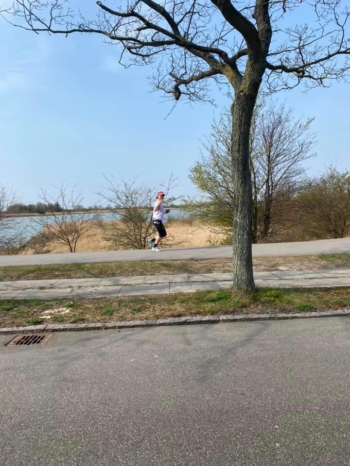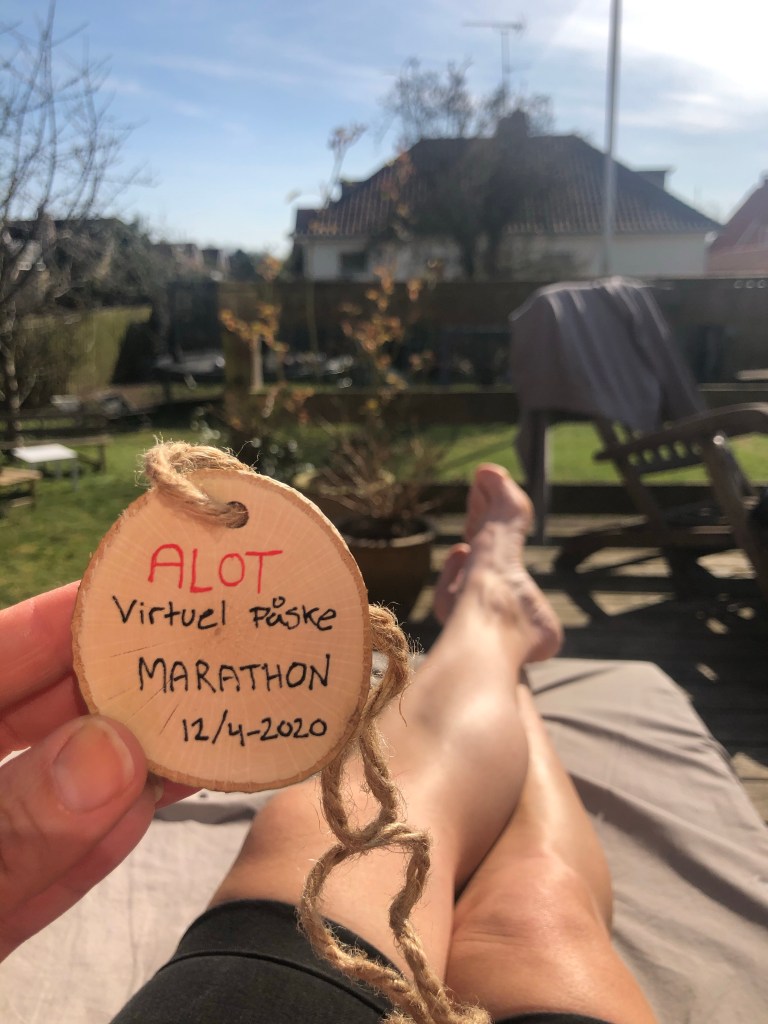 Nå, men hvad har du så lavet i dag? Jo, jeg har løbet Marathon uden publikum, uden officiel tidstagning, uden helt planlagt rute og uden depoter. Tilgengæld med den flotteste håndlavede medalje, virtuel fantastisk opbakning og lidt selskab undervejs.Mellanie løb to meter ved siden af mig de første 10.5 km – hjemmefra og til Brøndby strand. Dejligt at have selskab. Jeg måtte smide min langærmede og give Mellanie den med hjem. Det blev varmt!Derefter var jeg alene: jeg mødte Tanja og Tina på vejen – den modsatte vej rundt. Jeg talte i telefon med Sussi et par gange og havde ellers Mads og Monopolet i ørerne. Jeg holdt en ret stabil pace på ca 6 rolige min/km og forsøgte at holde den deromkring. Ind i mellem var der lidt vind. Jeg havde 6 geler med og en pose vingummi. Jeg tog en gel hver 40. Minut og derimellem et par vingummier. Drak vand hele tiden fra min bløde Salomon flaske som jeg fyldte med vand to gange; ved kolonihaverne i Ishøj og ved rideskolen i Taastrup. Det var ret perfekt.Jeg forsøgte at holde vestegnsruten hele vejen rundt, men det gik ikke helt: jeg for vild i Albertslund (af alle steder!, men jeg kunne sgu ikke finde den rigtige vej til tunnelen under Roskildevej pga en spærring) så jeg måtte korte ruten lidt af pga mine fejlløb undervejs. Men det var en meget fin tur. Jeg mødte et mudderhul undervejs og fik meget våde fødder til anklerne og måtte også lige assistere ved et cykelstyrt 300 m før “mål”. Heldigvis ingen tilskadekomne 🙂Så har jeg prøvet det. Og det gør jeg gerne igen. Den fineste medalje var klar herhjemme. Og en kold øl på terrassen i et par shorts efter et bad:-)