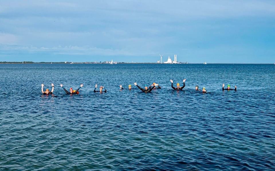 Tirsdag stod den så på lange og varme timer på hjemmekontoret, så det var en perfekt afslutning på dagen med en svømmetur. Vi var knap 20 svømmere i mindre grupper.
