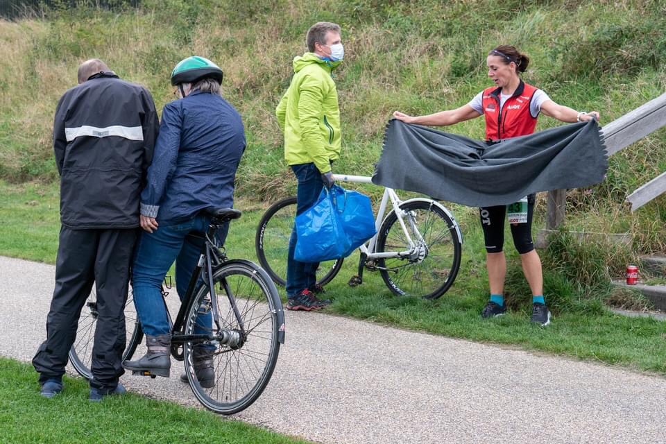 Løbet slutter med at et horn lyder over søen og alle løbere stopper og venter på DAF opmåling af den sidste runde. Tæpper udleveres mens man venter og jeg havde taget en cola med da jeg løb igennem depot sidste gang. Den smagte himmelsk!