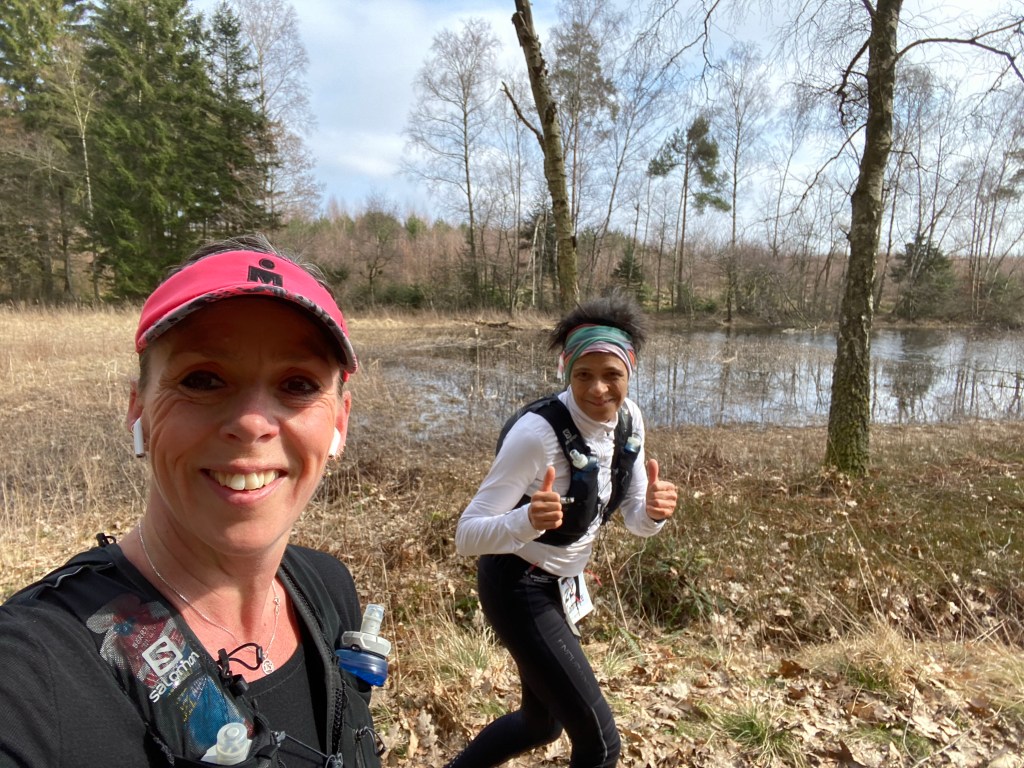 Vi råbte efter ekko i Ekkodalen. Jeg var begyndt at høre lidt musik på Mandys opfordring og Carla har en genial playliste med alle de sange vores familie har minder omkring. Den hjalp og jeg sang nærmest med fra 42-45 km. Det var indimellem en overraskelse, hvad Carla har sat på listen, og jeg blev helt rørt over at høre Shu-bi-dua, som også minder mig meget om min egen barndom 🙂