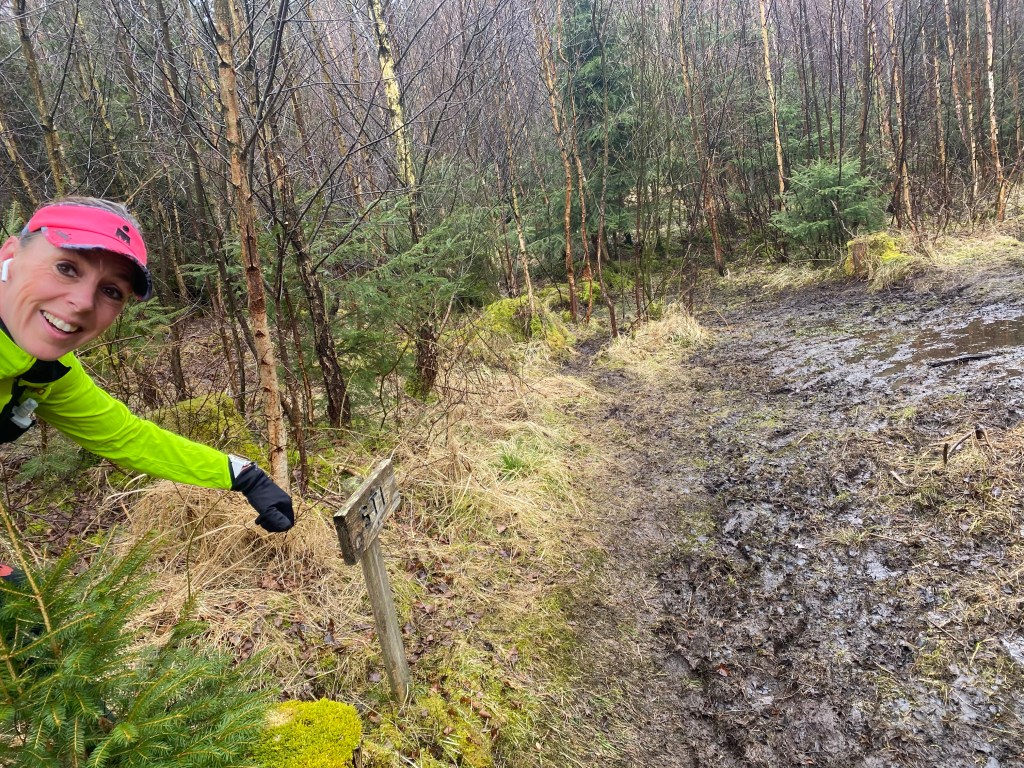 Fra 45-50 km var det lidt strengt. Regnen var tung og føret tiltagende dårligt. Det var glat. Mandy var nede og bide i mudderet, og vi vidste godt den strenge del af ruten stadig lå foran os. Jeg fortrød inderligt, at jeg hvad glemt at skifte til trailsko.