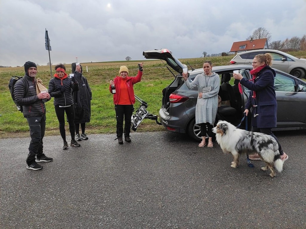 I mål mødtes vi med Jesper fra ALOT, som også havde løbet. Vi fik tørt tøj på og stod hurtigt og frøs med et glas bobler og en skål. Tina og Charley fangede os også ligesom vi løb ind på “målopløbet.”