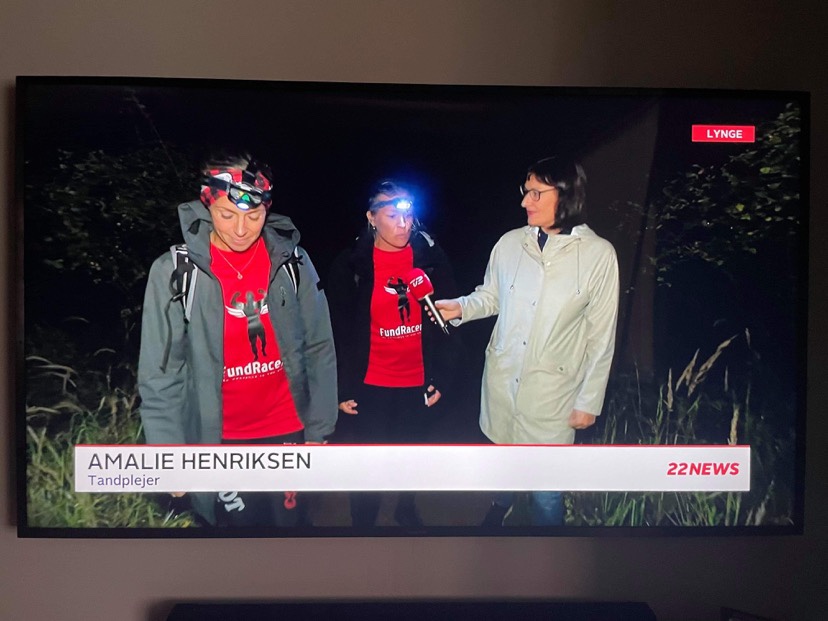 Først på aftenen havde TV2 News kontaktet Jakob for at få et indslag, om hvorfor vi “gør det” og kl 22 var vi med live i TV, da vi fik arrangeret et møde med kamerahold og journalist i mørket på Ganløse landevej. Der var meget spontant og sjovt at være med.