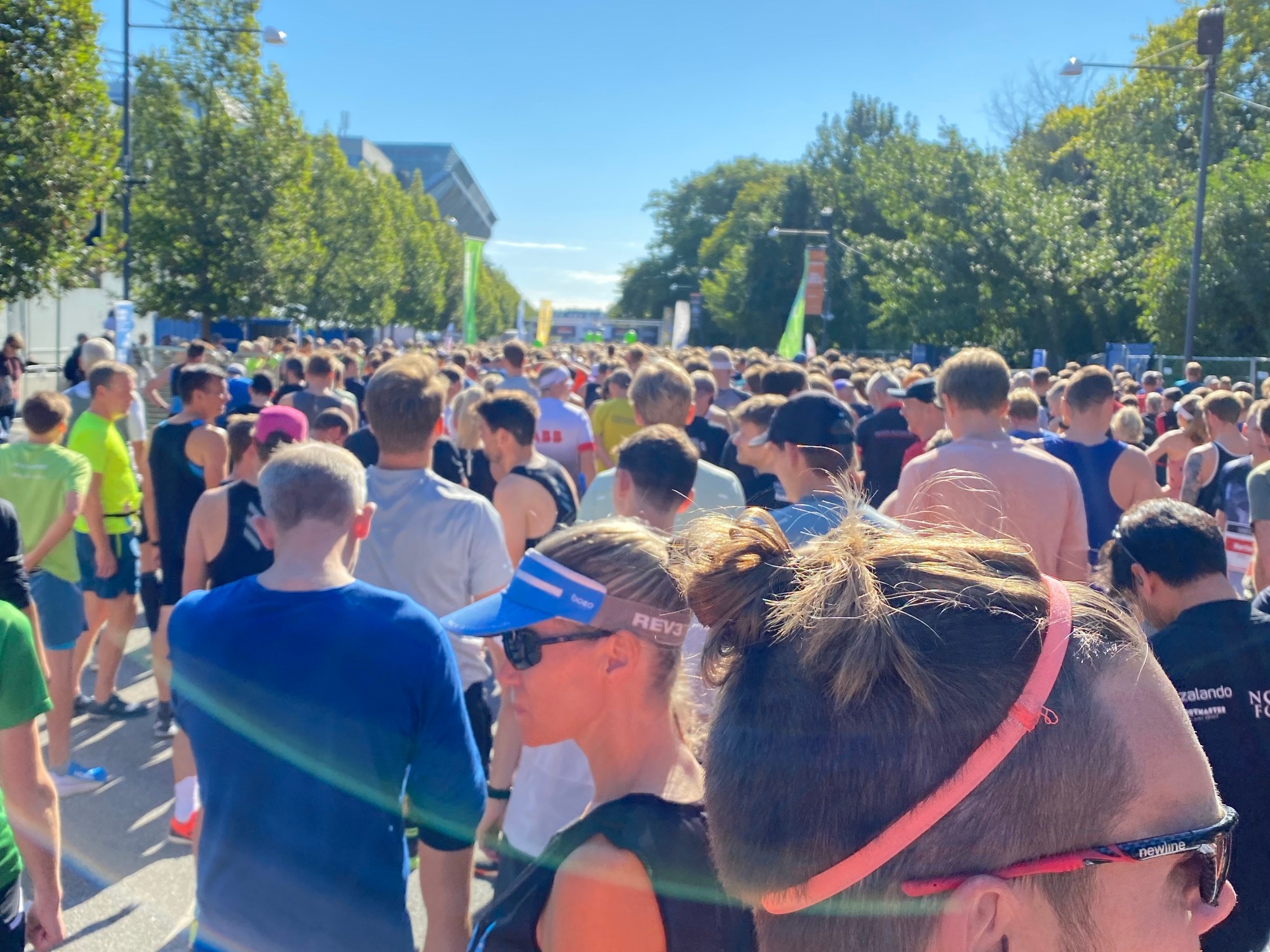 Lige så flyvende og let jeg var til Royal Run for en uge siden, lige så mammuth-tunge ben havde jeg i dag til CPH Half. Jeg kom totalt skævt og lidt for sent ud af døren, Amalie meldte fra fra morgenstunden, og da jeg sad alene i bilen, opdagede jeg, at jeg havde glemt startnumrene på køkkenbordet! Så jeg måtte vende om i Vanløse og bruge ½ time ekstra på at hente dem. Jeg parkerede bilen 10.55 på Tagensvej og nåede lige præcis og heldigvis starten kl. 11.15, efter en kort opvarmning fra bilen til startboksen.