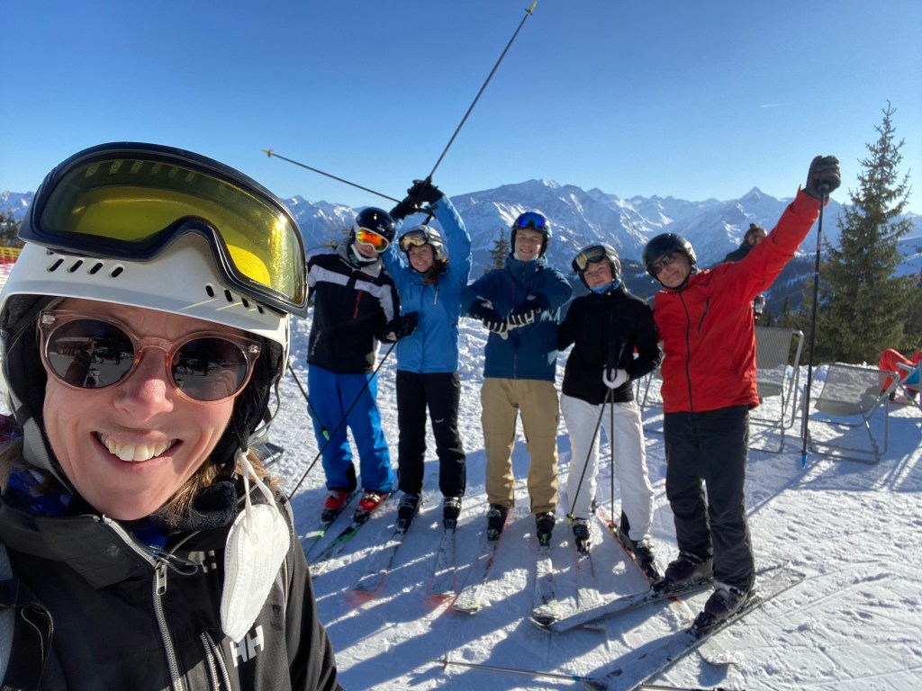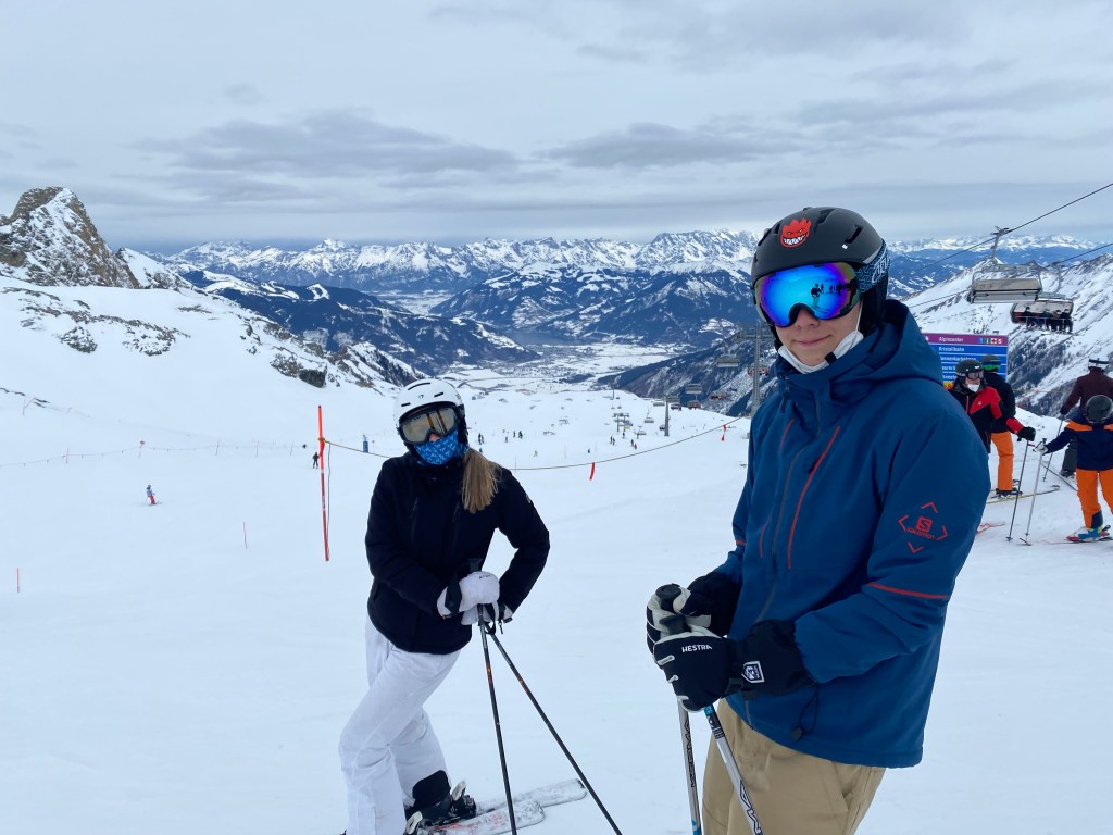14.5 timer senere parkerede vi bilen ved liften i Schmittenhöhe og hoppede i de lejede ski. Vores lille selskab inkluderede også Eik, Livas kæreste og i Zell am See var også Valdemar, Carlas kæreste med sin egen familie, så det var virkelig hyggeligt, at vi kunne krydskombinere det hele.