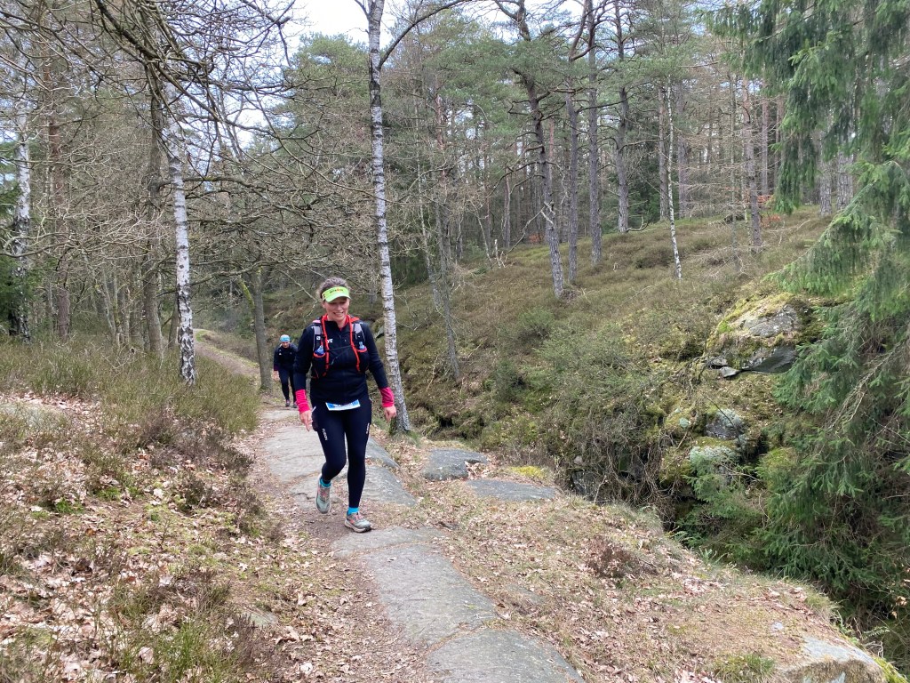 Rytterknægten blev passeret, og jeg var stadig godt løbende. Jeg kom også forbi mindst to rokkestene. Jeg havde hentet to kvinder og vidste at jeg nok lå nr 3. Jeg hørte lidt lydbog og musik. Carla ringede for at fortælle, og jeg ringede til Mark og Liva som lå på terrassen derhjemme i solskin og så blev jeg underholdt på et lidt kedeligt stykke (som der nu ikke er mange af).