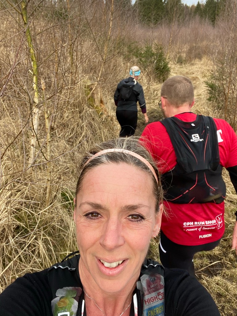 Vi løb med Karina fra Tejn If, en kvinde jeg også sidste år fulgtes med til start. Caroline skulle først løbe kl 12 og 1/3 af ruten på Højlyngsstien.