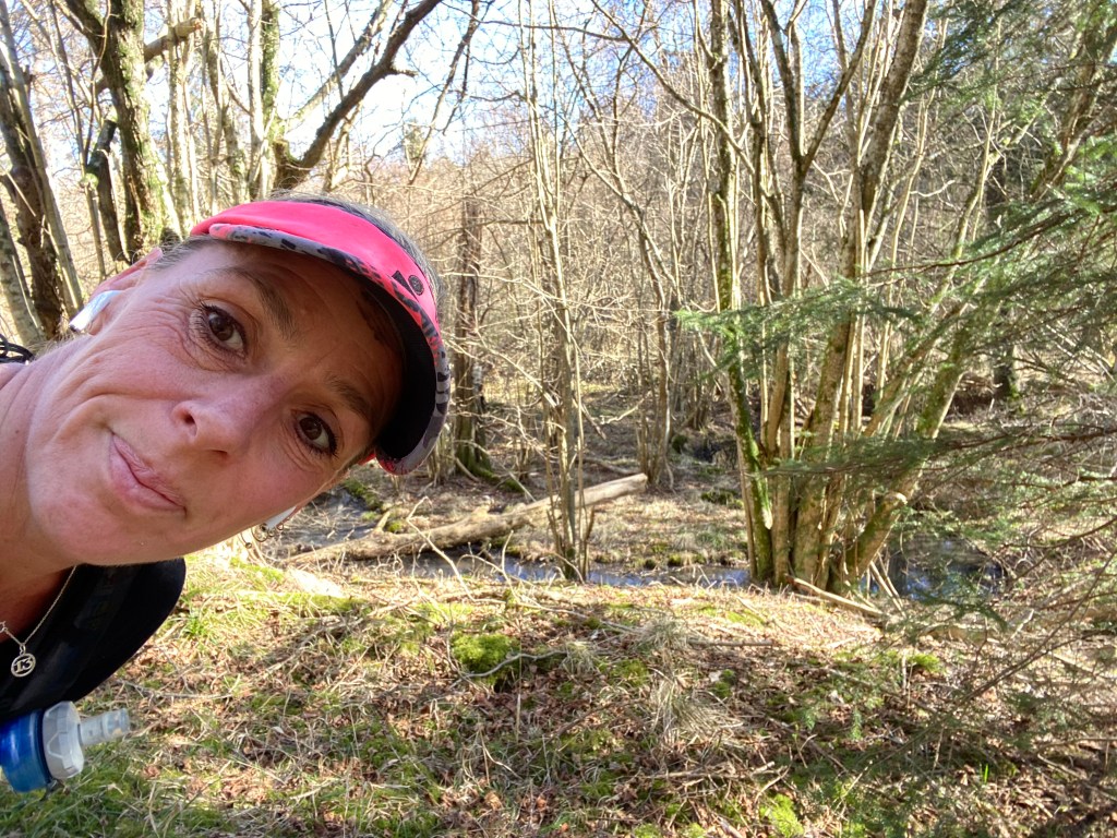 Et eller andet sted i Rø Plantage omkring 42 km var jeg i tvivl, om jeg var faret vild. Jeg havde passeret det samme vandløb to gange, syntes jeg og det føltes som om jeg løb tilbage igen i den retning, jeg var kommet fra. Jeg gik lidt forvirret frem og tilbage og traf til sidst en beslutning om at fortsætte og se om jeg ikke kom til noget “ukendt”. Det gjorde jeg heldigvis!