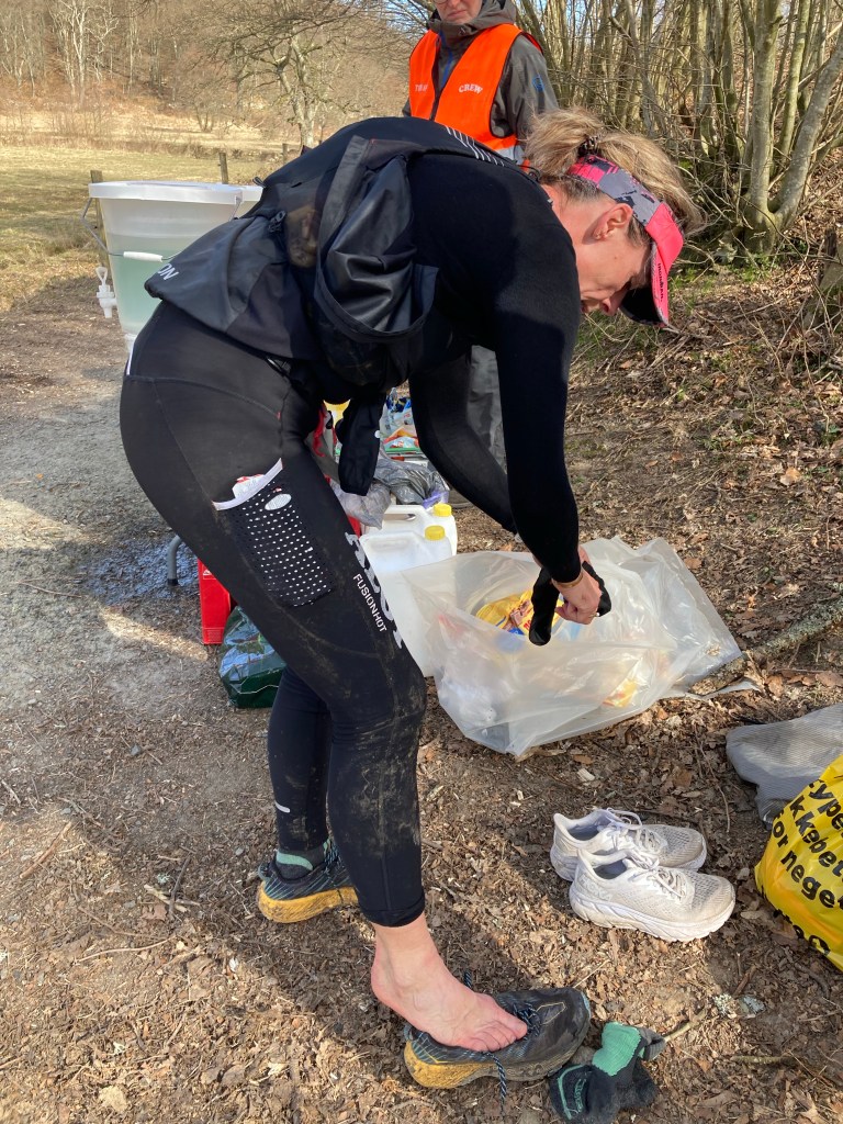 Jeg fulgte min energiplan og efterhånden er jeg ret erfaren og god til det: jeg ved hvad der virker og hvad jeg kan lide: saltstick hver time, og i rygsækken en blanding af gifler, nødder, cola vingummi og lakrids og karameller. Vand i rigelig mænger og et par geler. I depoterne spiser jeg chips, drikker cola og kakao.