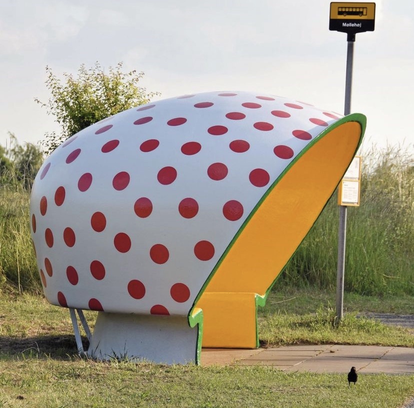 Efter morgenmaden i dag gik vi næsten alle til Vesterlyng strand og efter vi havde dyppet hundene i havet, løb jeg videre på dele af tourruten. Regnen og trafikken havde allerede nappet meget af den fine kridtudsmykning på vejene men der var stadig masser stemning. Havnsø har også fået et nyt vartegn – det fine tour malede busstoppested.